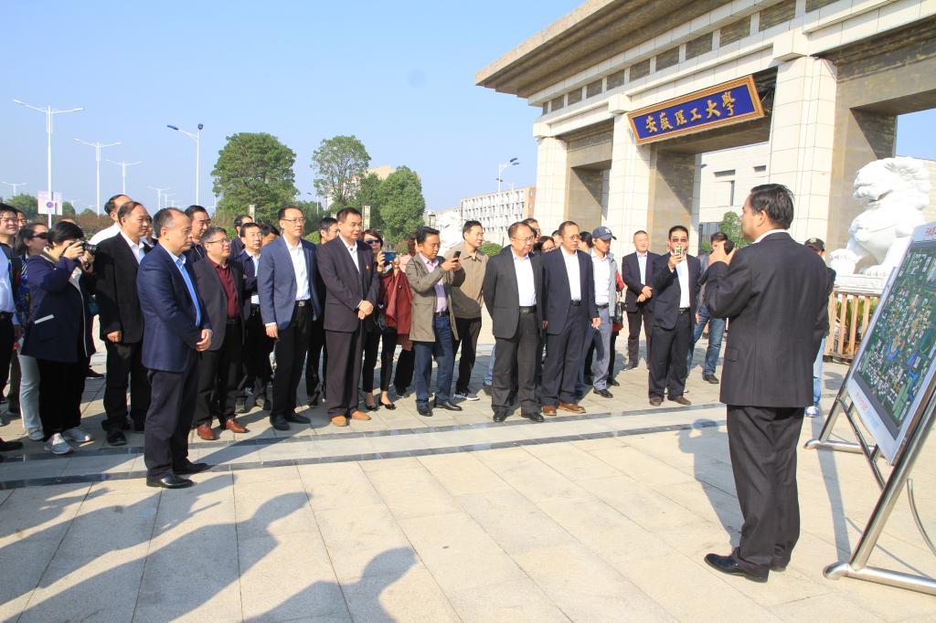 上午9时许,校友们首先来到在学校南大门,吴照明向校友们介绍了学校新校园建成投入使用情况、校园整体布局和建设规划。校友们仔细聆听介绍,表示新校区给学校发展带来新的机遇,前景令人振奋。随后,校领导同校友们驱车参观了校园。