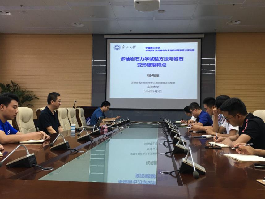 9月7日,东北大学张希巍教授受邀到采动国家重点实验室作了题为《多轴岩石力学试验方法与岩石变形破裂特点》的学术报告。