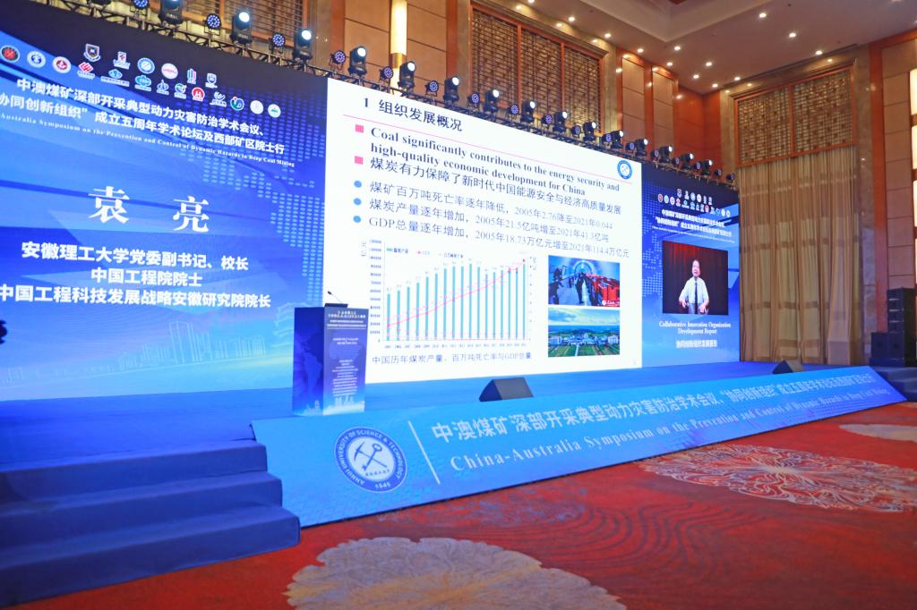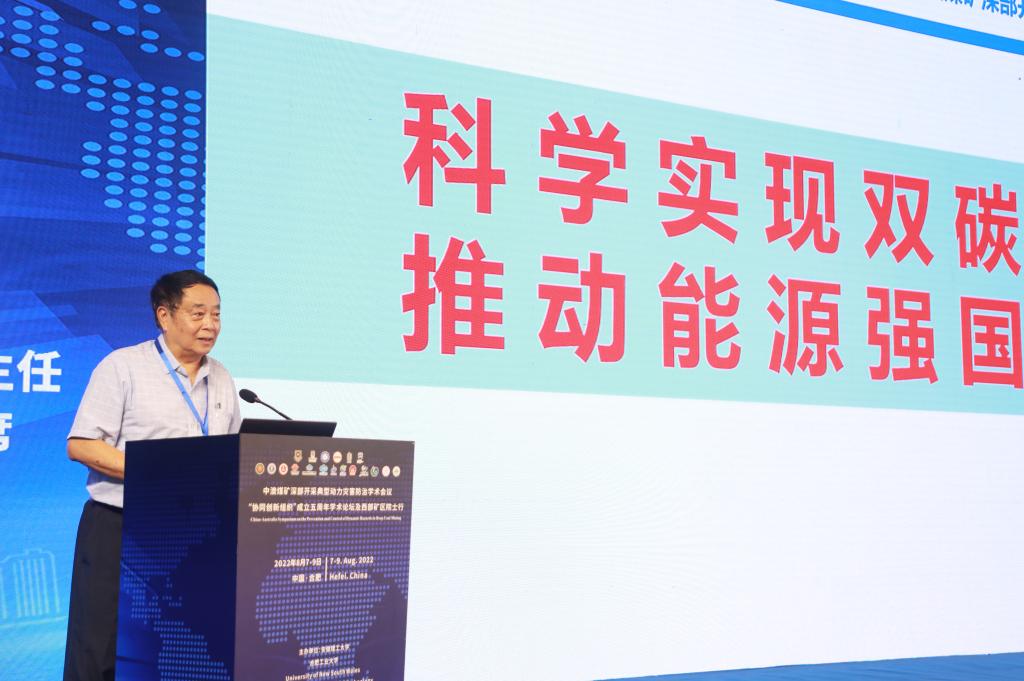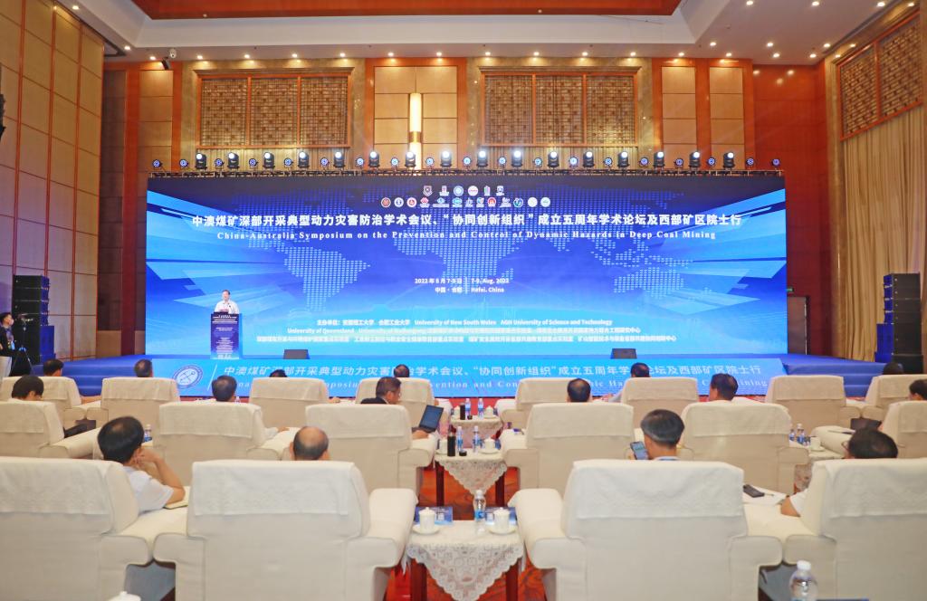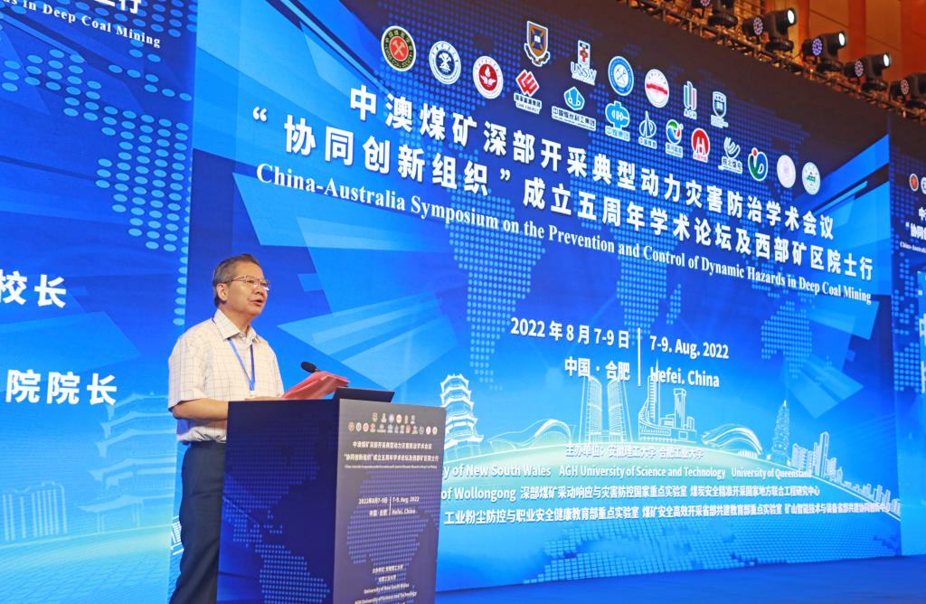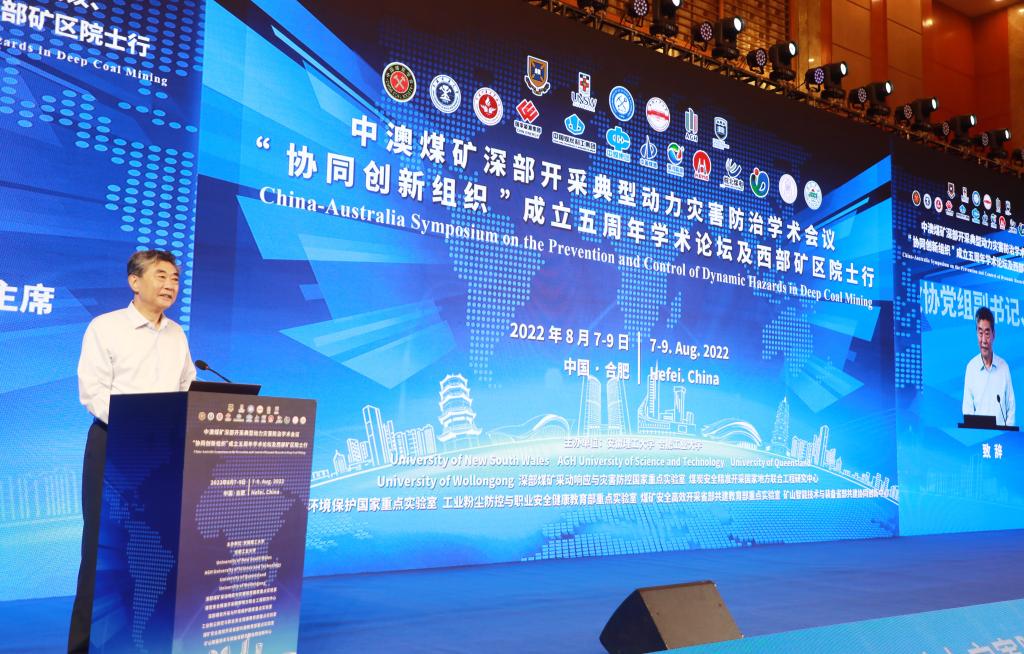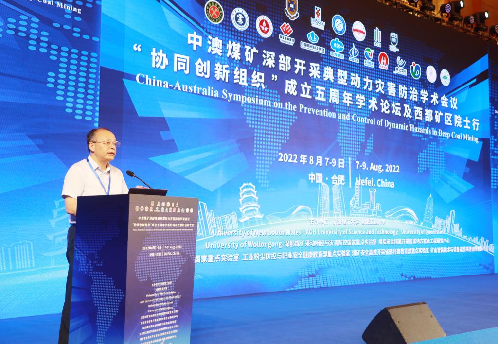 8月8日,由安徽理工大学、合肥工业大学、University of New South Wales、AGH University of Science and Technology、University of Queensland、University of Wollongong等单位发起,联合主办的中澳煤矿深部开采典型动力灾害防治学术会议、“协同创新组织”成立五周年学术论坛在合肥隆重举行。20位中国工程院院士、100多位专家学者和政府企业领导通过线上、线下相结合的方式共聚一堂,共商战略发展大计。此次论坛围绕“探索煤矿深部采动防灾对策,助推能源安全与清洁化利用”主题,共同回顾“协同创新组织”五年奋斗历程,共同展望煤炭安全智能开采领域未来发展的美好前景。