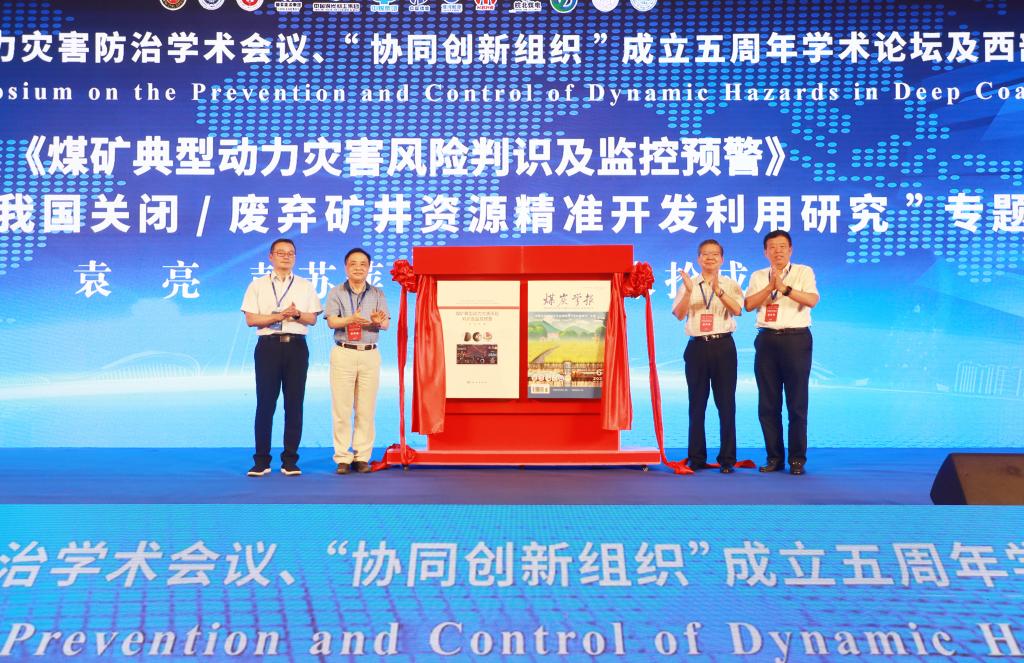 其间,举行了著作揭牌仪式。由袁亮及其团队完成的《煤矿典型动力灾害风险判识及监控预警》一书由科学出版社出版;由袁亮担任客座主编的《煤炭学报》“我国关闭/废弃矿井资源精准开发利用研究”专题在煤炭学报2022年6期出版,并进行发布。彭苏萍院士、王国法院士、朱拴成总编、袁亮院士,共同为这两本著作揭牌。