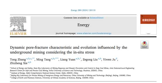 实验室老师张通为论文的第一作者,袁亮院士为论文通讯作者,唐明博士等参与了重要研究工作。上述研究得到了国家自然科学基金委基金、安徽省优秀青年基金、合肥综合性国家科学中心(能源研究院)重大项目等多项资助。成果将为矿产资源安全高效开发、煤矿安全管理等方面提供重要理论支撑。