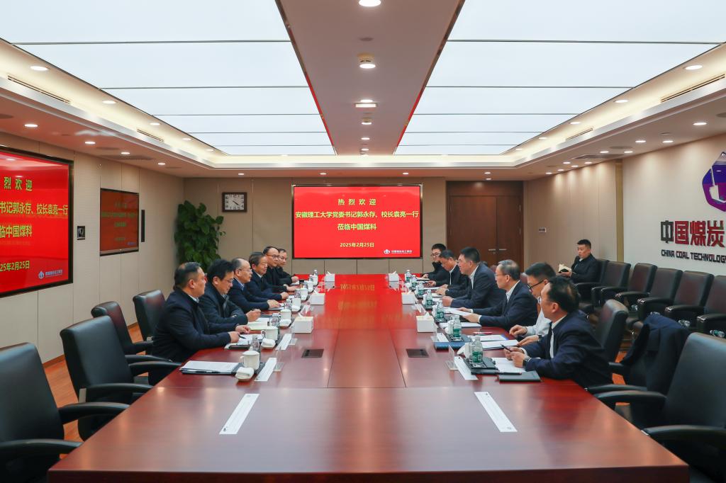 2月25日,校党委书记郭永存,党委副书记、校长袁亮院士一行赴中国煤炭科工集团调研交流,受到中国煤炭科工集团党委书记、董事长胡善亭热情接待。校企双方围绕煤炭无人化开采数智技术全国重点实验室建设及产学研深度融合发展进行座谈交流。校党委常委、副校长赵光明,中国煤炭科工集团党委常委、副总经理周俊等参加。