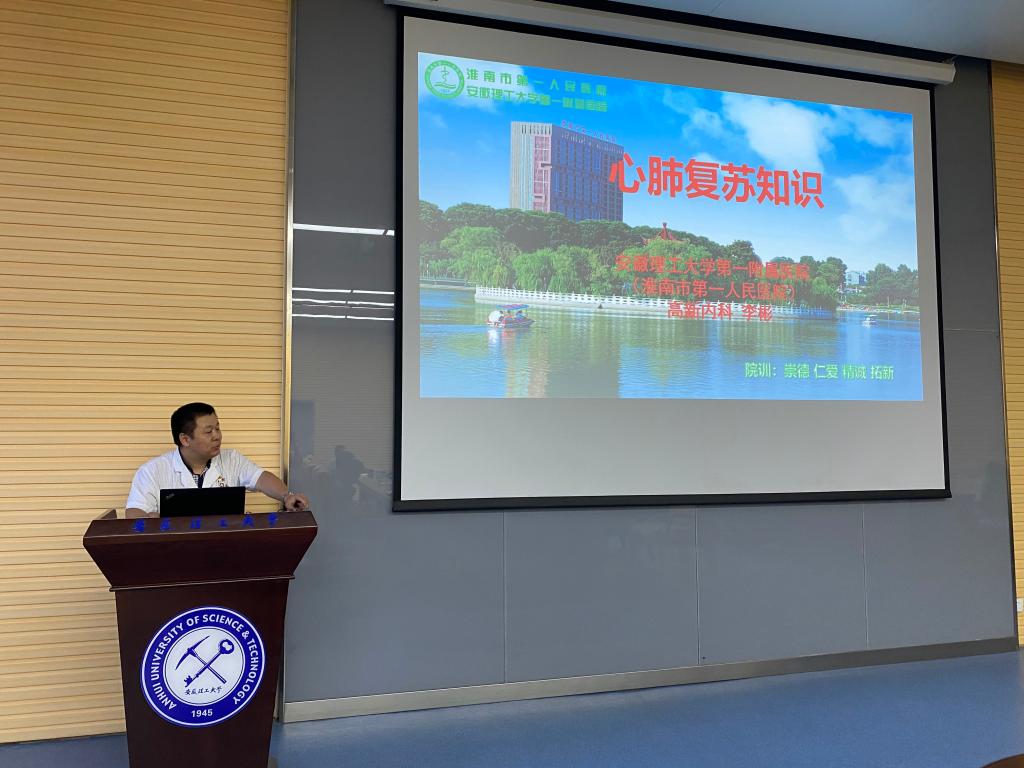 举办急救知识讲座。6月14日,安徽理工大学第一临床医学院副院长荣向霞、第一附属医院神经内科副主任李彬应邀为全体教职工开展了一次心肺复苏知识培训,介绍了心肺复苏急救的基本原则、方法与步骤,让大家了解了“黄金四分钟”的重要性。